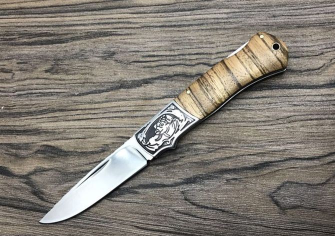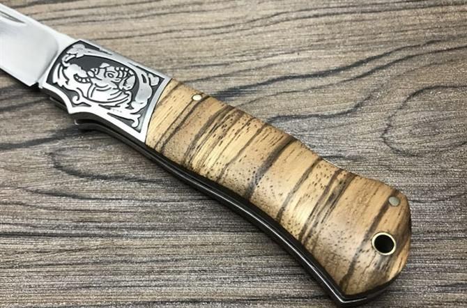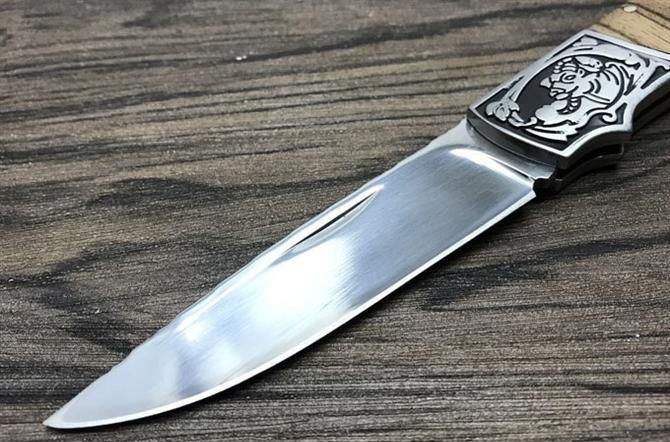 BUCK巴克老羊折刀 全长:23cm 刃长:10cm 刃宽:2.2cm(最宽处) 刀柄:13cm 硬度:57HRC 刃厚:0.29cm 重量:250克 表面:镜光 刃材:440C 柄材:全钢头雕花+木 锁闭:传统式制尾锁 其他:尼龙套包装,刃口锋利。