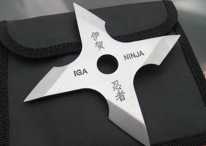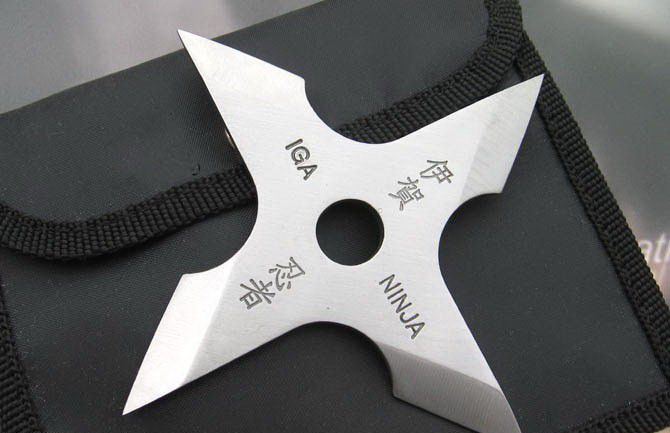 伊贺忍者-四角飞镖 全 长:10cm 刃 厚:4mm 刃 材:440A 硬 度:57Hrc 表 面:抛光 刀 套:尼龙