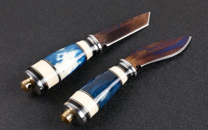 刃材:锻打大马士革钢,新技术镀钛工艺。