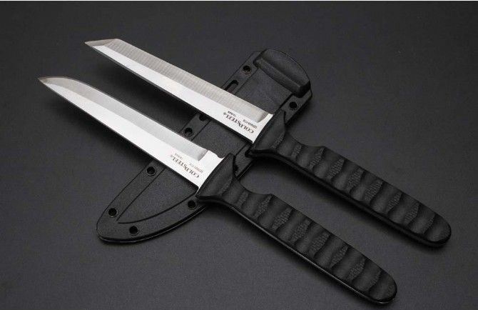 冷钢小武士K鞘(方头、尖头) 全长:203mm 刃长:103mm 柄长:100mm 刃宽:16mm 刃厚:2.5mm 刃材:5CR13 重量:85g(含包装) 硬度:57HRC 表面:砂光 柄材:ABS 锁型:定锁 其他:配原厂彩盒+ABS战术k鞘