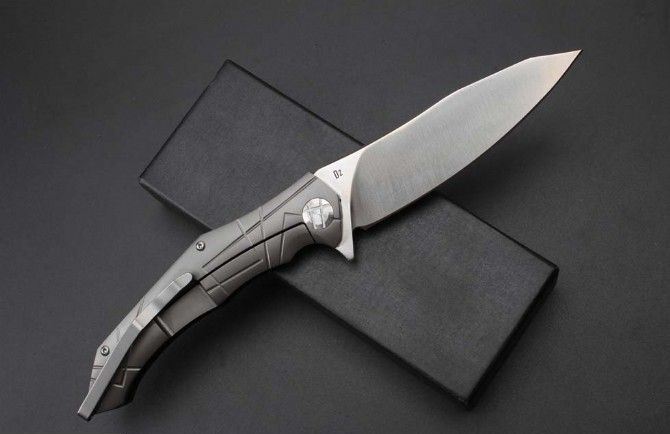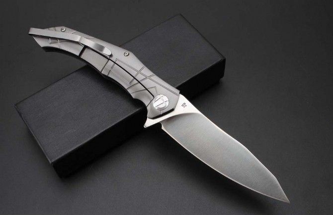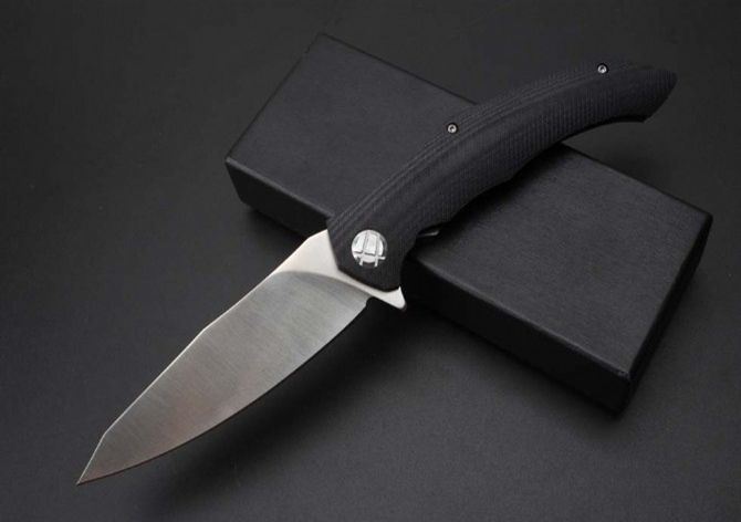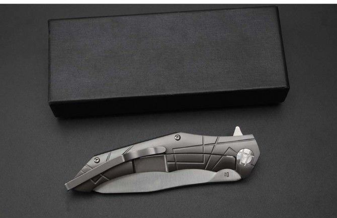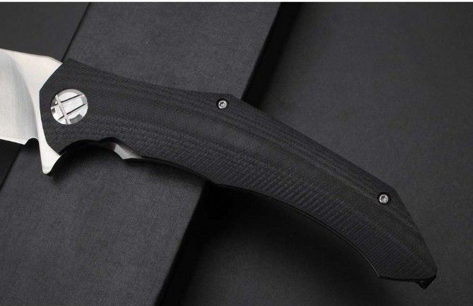 D2钢不对称轴承快开折刀 全长:23.8cm 刃长:10.6cm 柄长:13.1cm 刃宽:2.8cm 刃厚:3.9cm 刃材:D2钢 重量:195g(含包装) 硬度:58HRC 表面:拉丝沙光- 柄材:钢+G10 锁型:侧锁 其他:原厂礼品盒