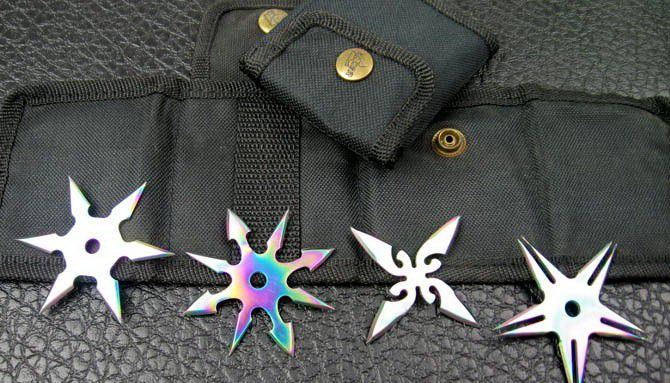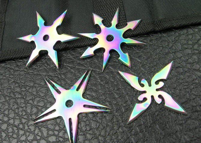 四五六角飞镖,镀彩钛,非常漂亮的组合套装!配尼龙套!
