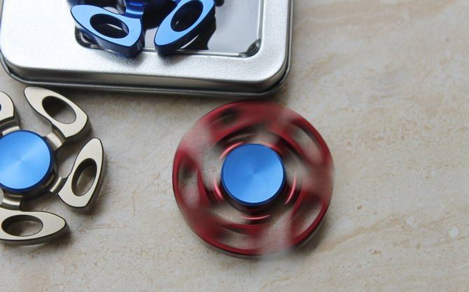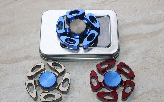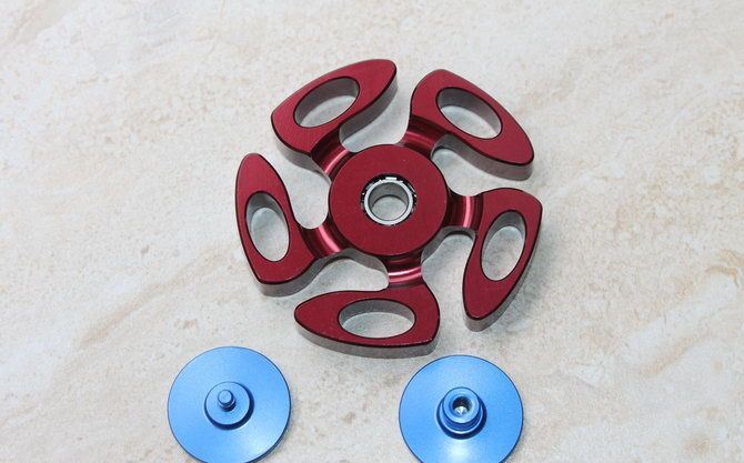360度旋转全铝合金陀螺(红色 和蓝色和宗色) 产品尺寸:4.5*4.5*0.68cm 转动系统轴承 材质:全铝合金品质是一流的。 重量:40克(含包装物) 包装:方铁盒装 本陀螺经CNC精密机床十几道工艺加工而成 陀螺转动时会有响声,是正常的,建议亲放在水平面或者垂直转动,放在手上尽量避免倾斜,手不稳的时候产生轻微抖动是正常现象。注意请不要用水洗的哦,因为轴承内的转珠碰水后就会有阻力,影响转速。
