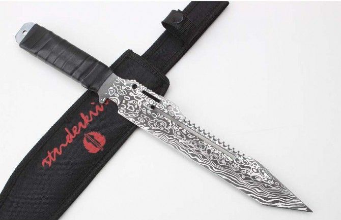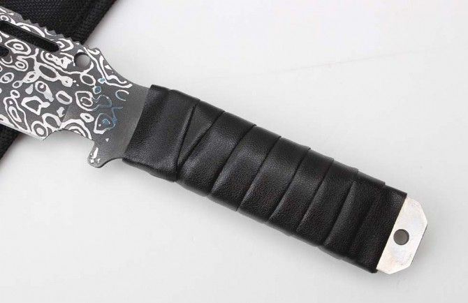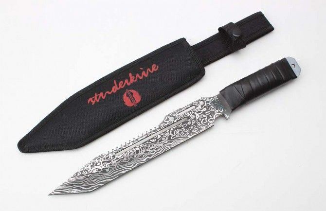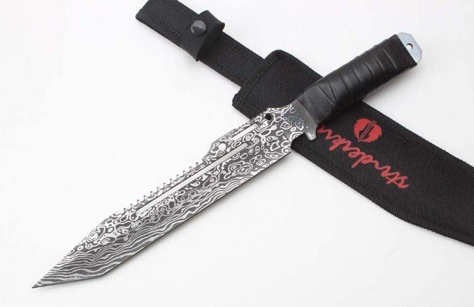 挺进者魔影直刀 全长:35.0cm 刃长:21.3cm 柄长:12.2 刃材:5CR13MOV 硬度:58 表面:凹凸腐蚀纹 刃厚:0.4cm 柄材:一体钢+防滑扎皮柄 刀重:225克 总重:245克 刀鞘:尼龙套