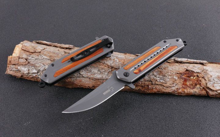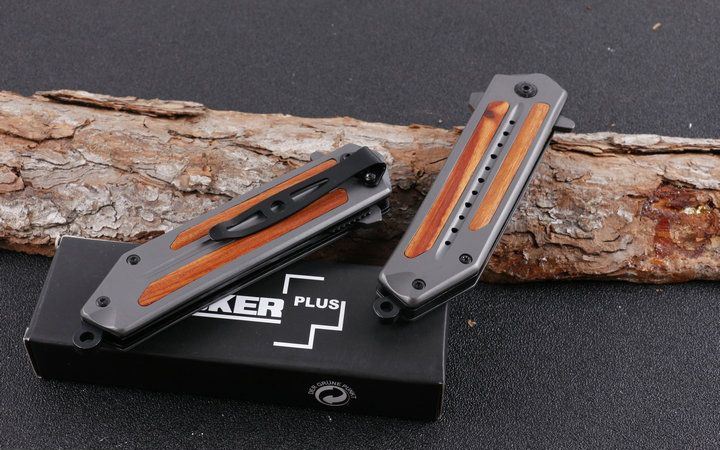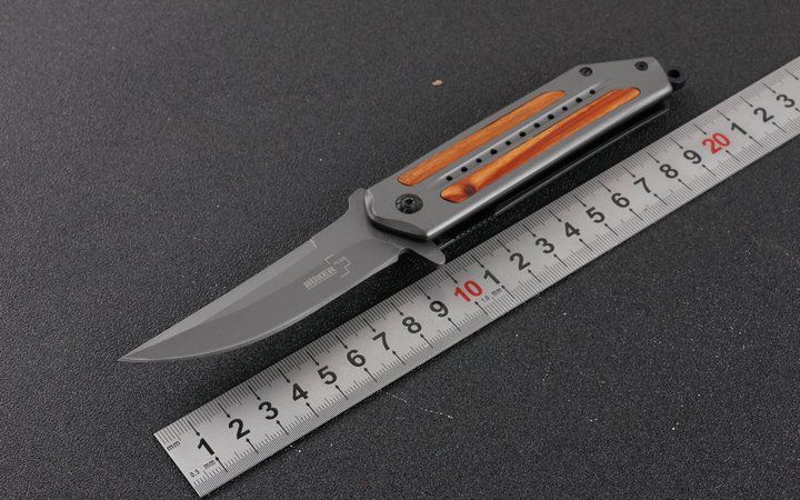 博克DA102快开折刀 全 长:20.8cm 刃 长:8.5cm 柄 长:12.3cm 刃 宽:2.2cm 刃 厚:2.8mm 刃 材:5Cr15Mov 重 量:185g(含包装物) 硬 度:58HRC 表 面:全灰钛 柄 材:全钢镶嵌红酸枝木 锁 型:一体线锁 其 他:配原厂盒