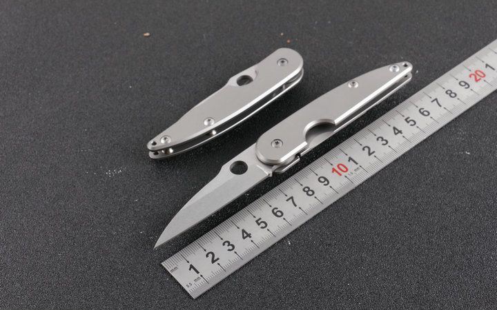全 长:16.8cm 刃 长:7cm 柄 长:8.2cm 刃 宽:2.0cm 刃 厚:3.2mm 刃 材:D2 刀 重;63g 重 量:100g (含包装) 硬 度:58-60HRC 表 面:灰钛 柄 材:钛柄。 锁 型:线锁。 其 它:开合流畅,包装彩盒