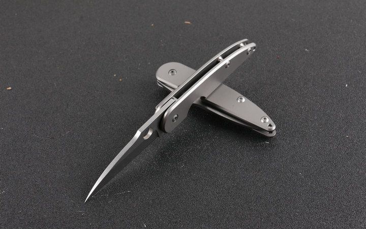 水平线D2折刀 全 长:16.8cm 刃 长:7cm 柄 长:8.2cm 刃 宽:2.0cm 刃 厚:3.2mm 刃 材:D2 刀 重;63g 重 量:100g (含包装) 硬 度:58-60HRC 表 面:灰钛 柄 材:钛柄。 锁 型:线锁。 其 它:开合流畅,包装彩盒