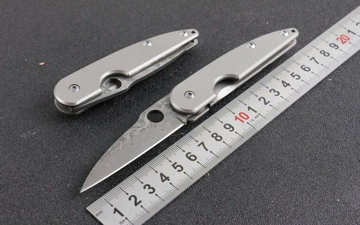 全 长:16.8cm 刃 长:7cm 柄 长:8.2cm 刃 宽:2.0cm 刃 厚:3.2mm 刃 材:大马士革 刀 重;63g 重 量:100g (含包装) 硬 度:58-60HRC 表 面:大马士革原有花纹 柄 材:钛柄 锁 型:线锁 其 它:开合流畅,包装彩盒