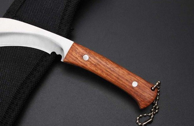 尼泊尔迷你小狗腿 全长:19mm 刃长:12.6mm 刃宽:2.2mm 刃厚:0.25mm 刃材:优质3铬钢 重量:81g(含包装) 硬度:56HRC以上 表面:沙光 柄材:酸枝木 其他:配牛津套小心使用锋利