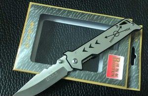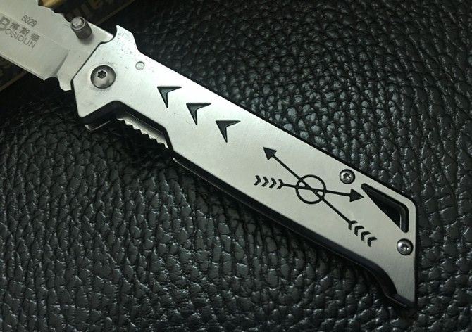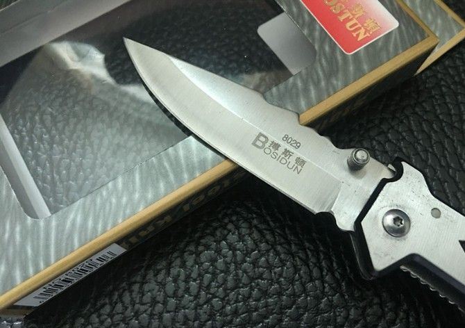 搏斯顿8029战士折刀 全长:20cm 刃长:8cm 柄长:11cm 刃厚:0.2cm 刃宽:2cm 刃材:5Cr13Mov 柄材:铝 硬度:57HRC 净重:150克(含包装) 锁定:线锁,内置轴承 表面处:沙光