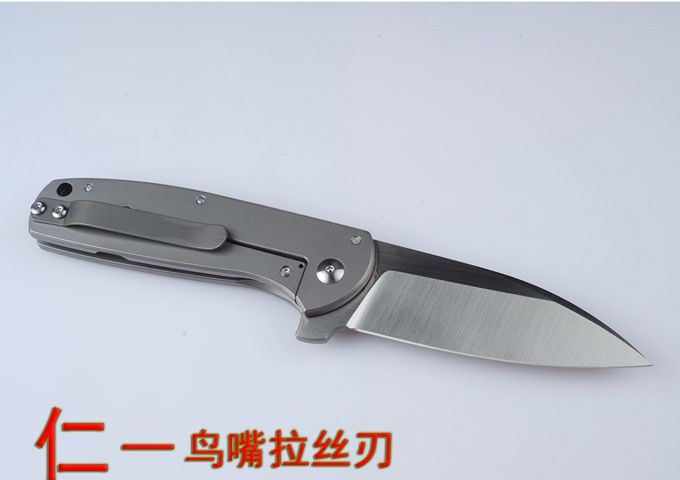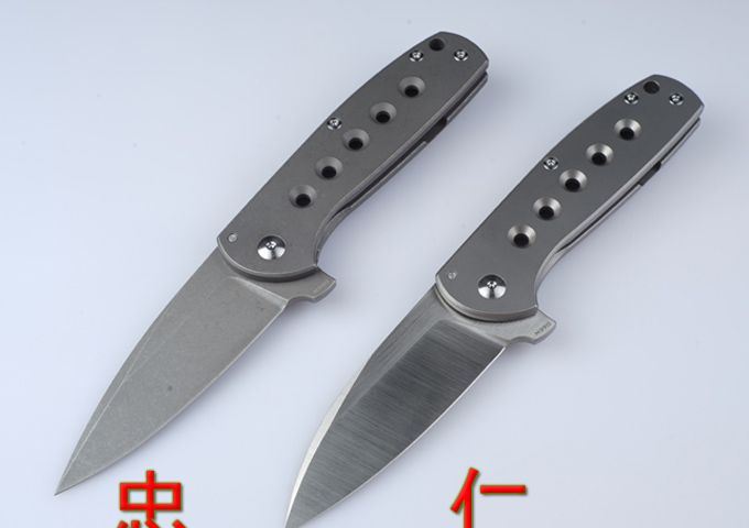 仁忠战术折刀 仁--鸟嘴拉丝刃 钛合金手柄 全长: 210MM 闭合: 120MM 刃厚: 3.5 MM 刃长: 90MM 刃材: M390 手柄表面处理:喷砂 硬度: 60 重量: 171克 线锁+钢锁头陶瓷滚珠+垫片 忠--尖头沧桑石洗刃 钛合金手柄 全长: 210MM 闭合: 120MM 刃厚: 3.5 MM 刃长: 90MM 刃材: M390 手柄表面处理: 沧桑石洗 硬度: 60 重量: 171克 线锁+钢锁头陶瓷滚珠+垫片