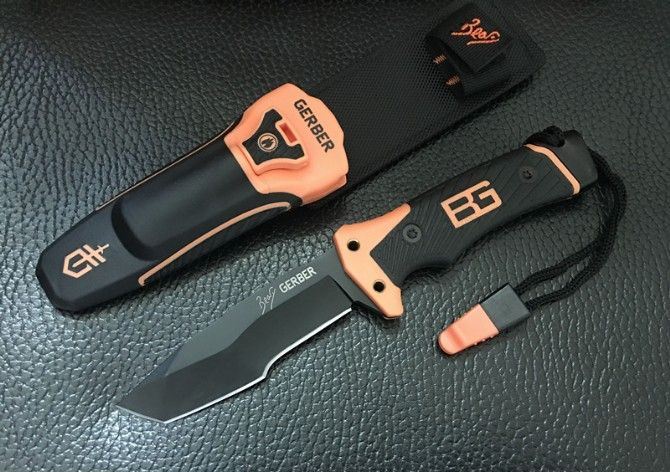 戈博BG6终极生存刀(方头全刃) 全长:24.5cm 刃长:10.5cm 刃厚:5mm 刃材:AUS-8A 柄材:尼龙+橡塑(手感柔软舒适、防滑) 硬度:58Hrc 表面:钛离子 刀套:ABS鞘+尼龙套 刀重:240g 总重:470g 刃区:机械刃/切削 配件:打火棒、磨刀石,哨子,原装彩合,说明书。