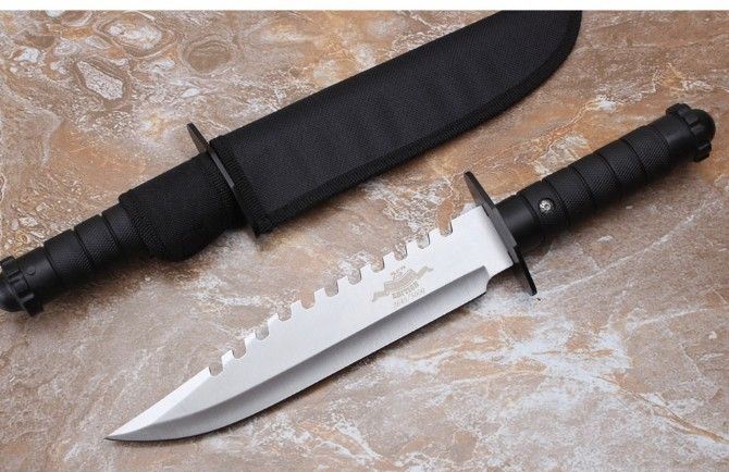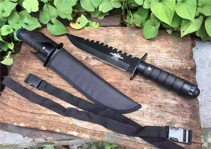 兰博匕首两色 全 长:33.6CM 刃 长:21.2CM 柄 长:12.3CM 刀身最大宽度:4.2CM 刀 厚:3CM 刃 面:喷砂 毛 重:317克(含k鞘) 钢 材:3CR13 硬 度:57 柄 材:绝缘强化塑胶
