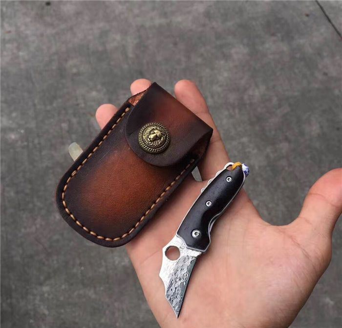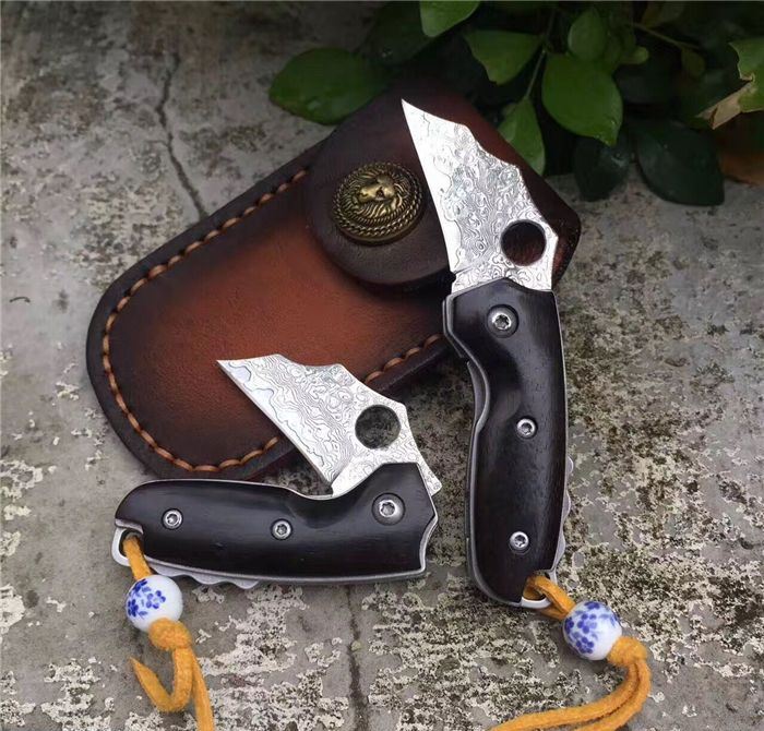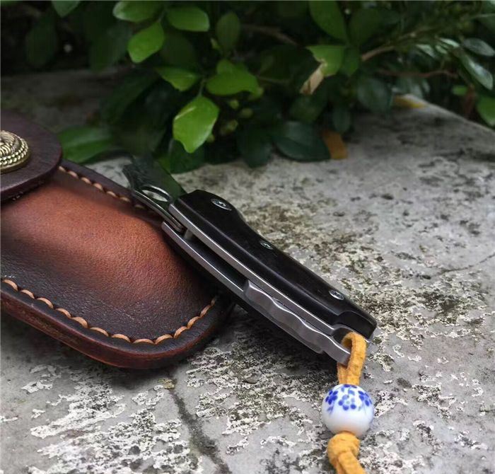 全长:10cm 刀刃:4cm 折合长:6.5cm 刀刃材质:大马士革钢 刃厚:2mm 硬度:59HRC(冷热处理) 手柄做工材料:天然黑檀木+钢片石洗附带安全锁装置
