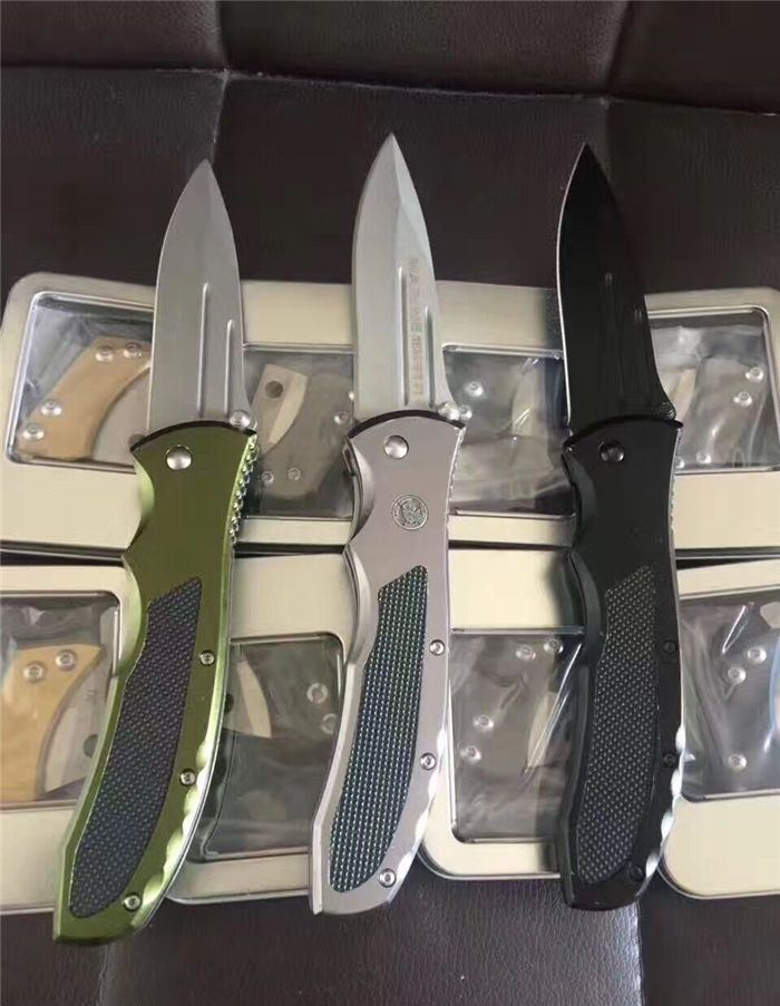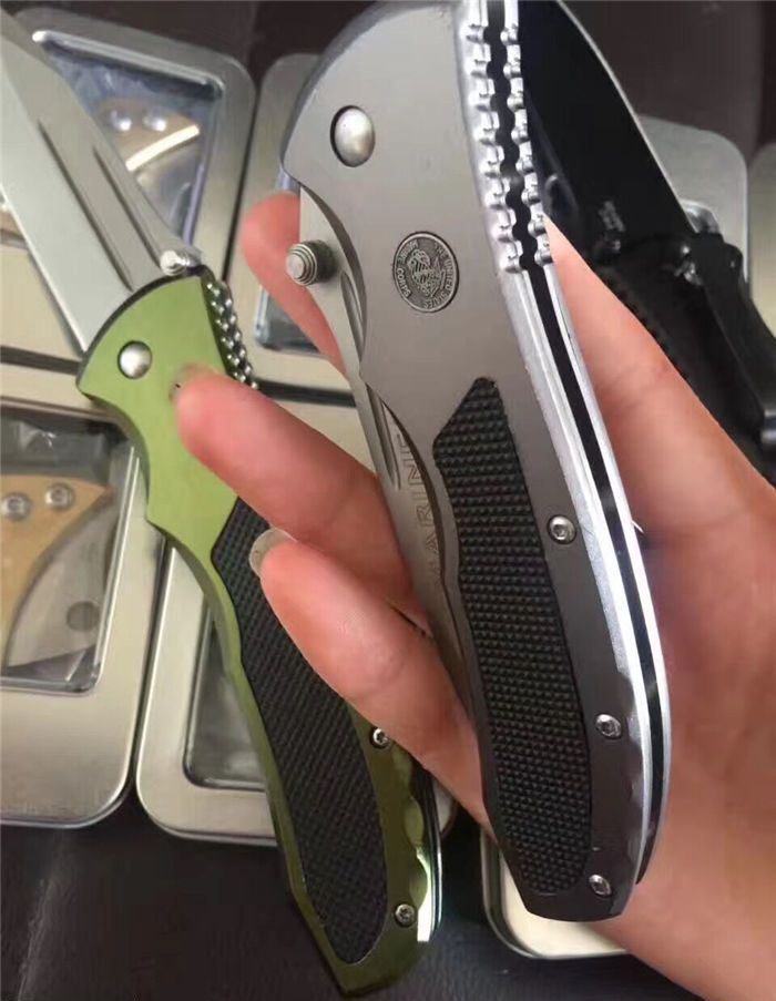 代工天梭折刀 全 长:23cm 刃 长:10cm 刃 宽:3cm(最宽处) 刃 厚:3mm 柄 长:13cm 表 面:石洗纹 刃 材:8CR13 硬 度:58HRC 柄 材:铝+ABS防滑 重 量:150克 锁 闭:线锁 备 注:带腰夹