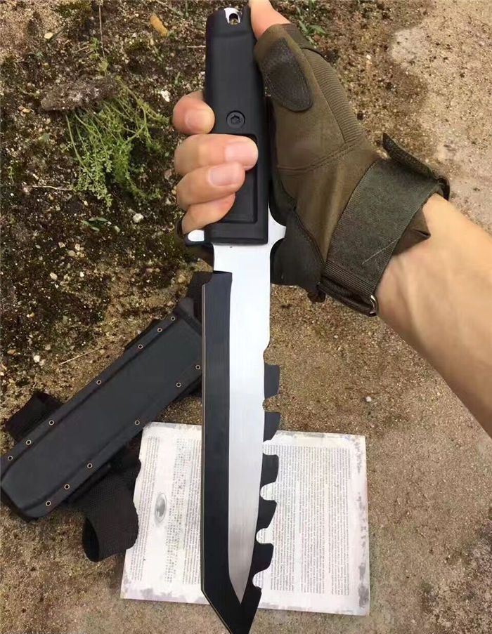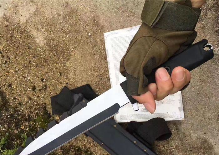 极端武力捕鲸叉拉丝版 全 长: 31cm 刃 长: 18cm 刃 厚: 6mm 刃 材: 8CR13MOV 硬 度: 58HRC 表 面: 拉丝黑钛 柄 材: 橡塑 刀 鞘: ABS