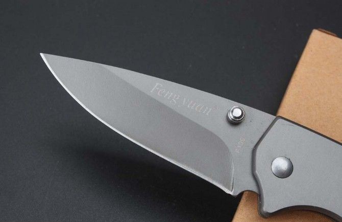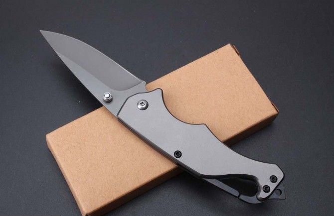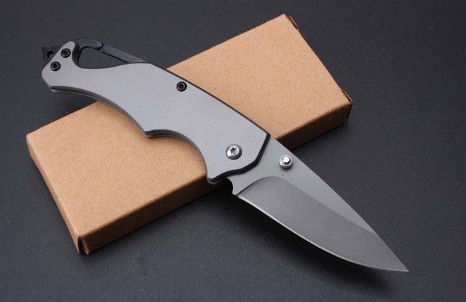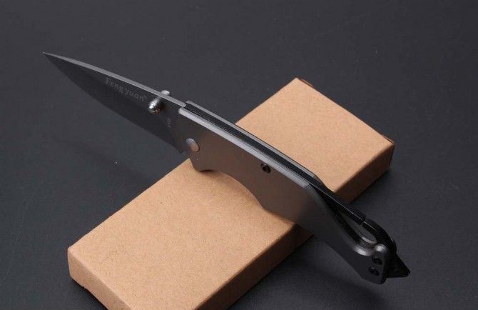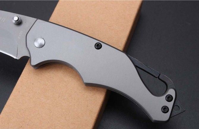 F109制尾锁折刀 全长:6.3cm 刃长:10.1cm 刃宽:2.4cm(最宽处) 刃厚:1.3mm 柄长:12.8cm 表面:镀钛 刃材:440C 硬度:57HRC 柄材:全钢 重量:106克(含彩盒子) 锁闭:制尾镀 备注:带腰夹.带玻璃撞击品