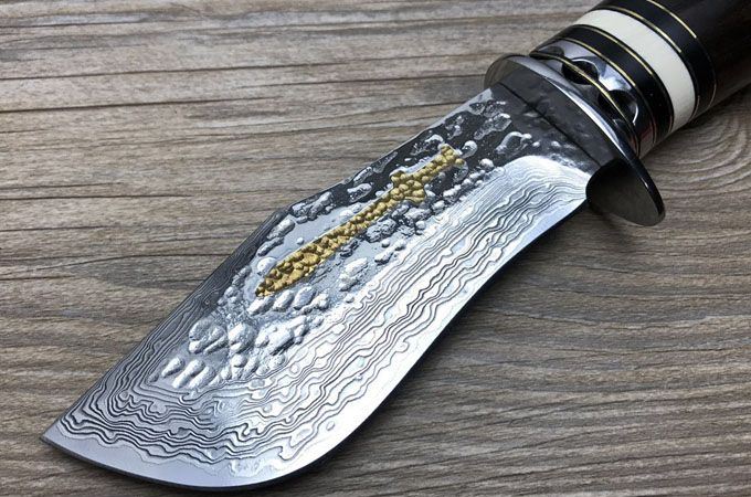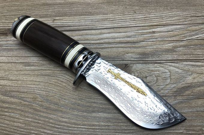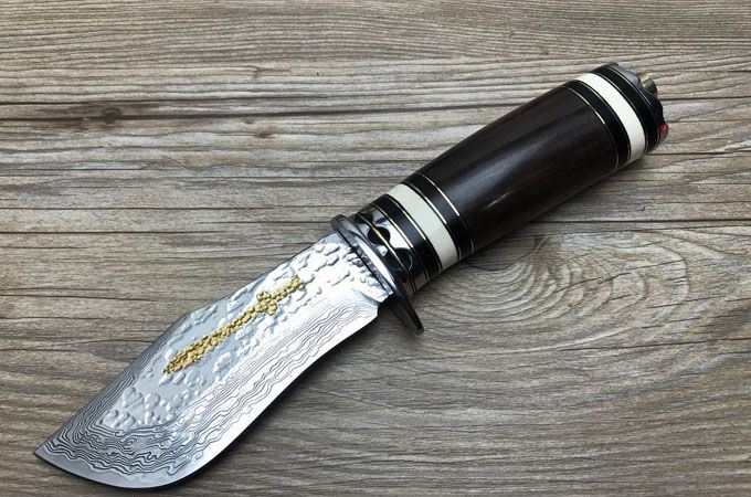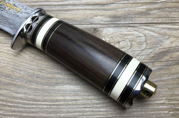 全 长: 22.6CM 刃 长: 11 CM 刃 宽: 3CM(最宽处) 柄 长: 11.6cm 硬 度: 58-60HRC 刃 厚: 0.4CM 重 量: 约400克(含包装) 表 面: 纯手工制造锻打雨滴祥云花纹原色 刃 材: 正品进口大马士革钢 柄 材: 黄铜+黑檀木+钢头 赠 送: 皮套