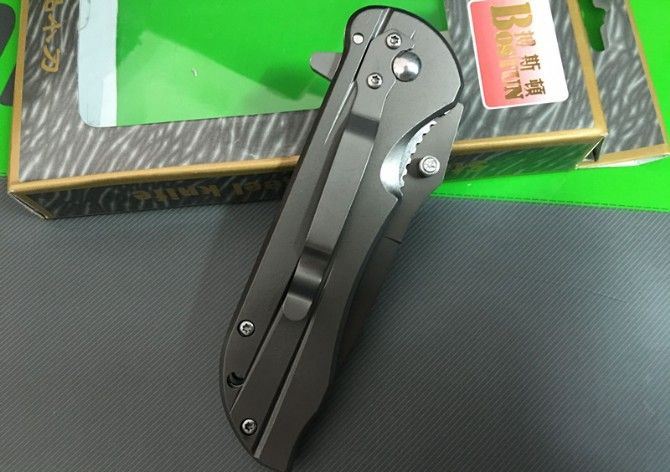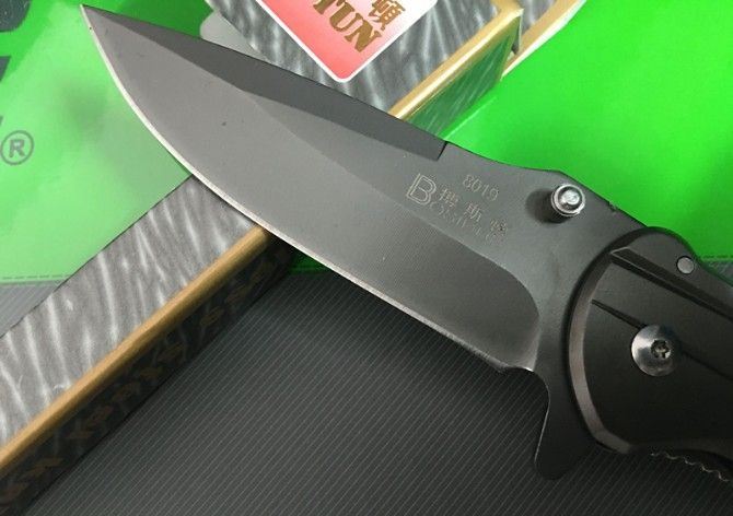 搏斯顿8019战术折刀镀钛 全长:20cm 刃长:8cm 柄长:11cm 刃厚:0.2cm 刃宽:2cm 刃材:5Cr13Mov 柄材:铝 硬度:57HRC 净重:150克(含包装) 锁定:线锁,内置轴承 表面处:镀钛
