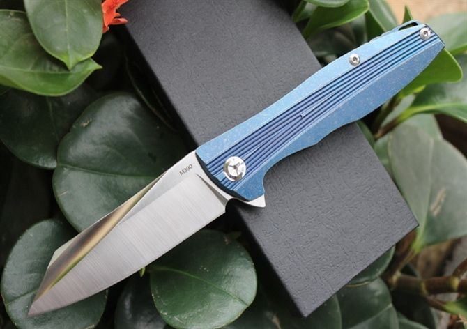 火箭M390钢蓝色石洗柄折刀