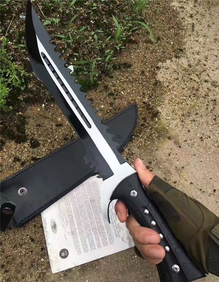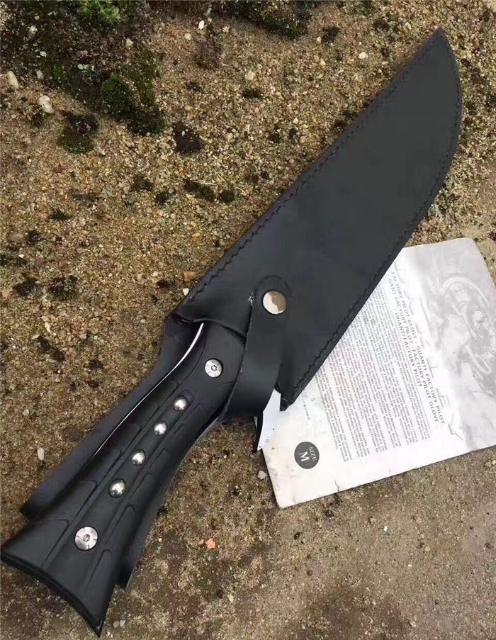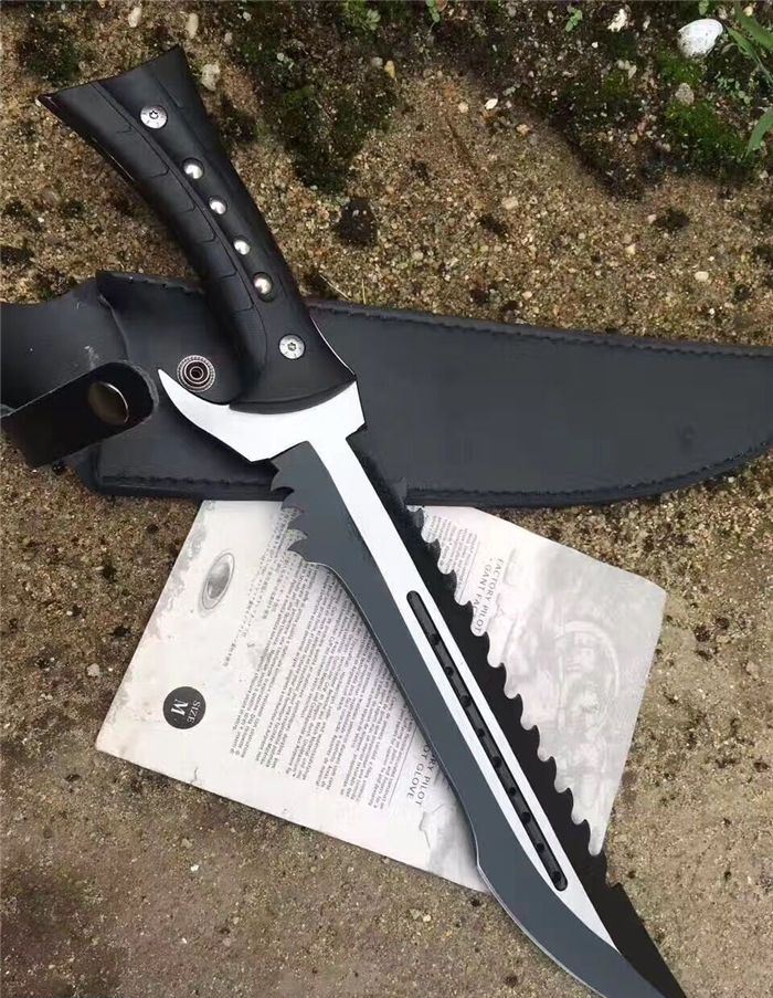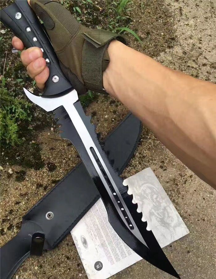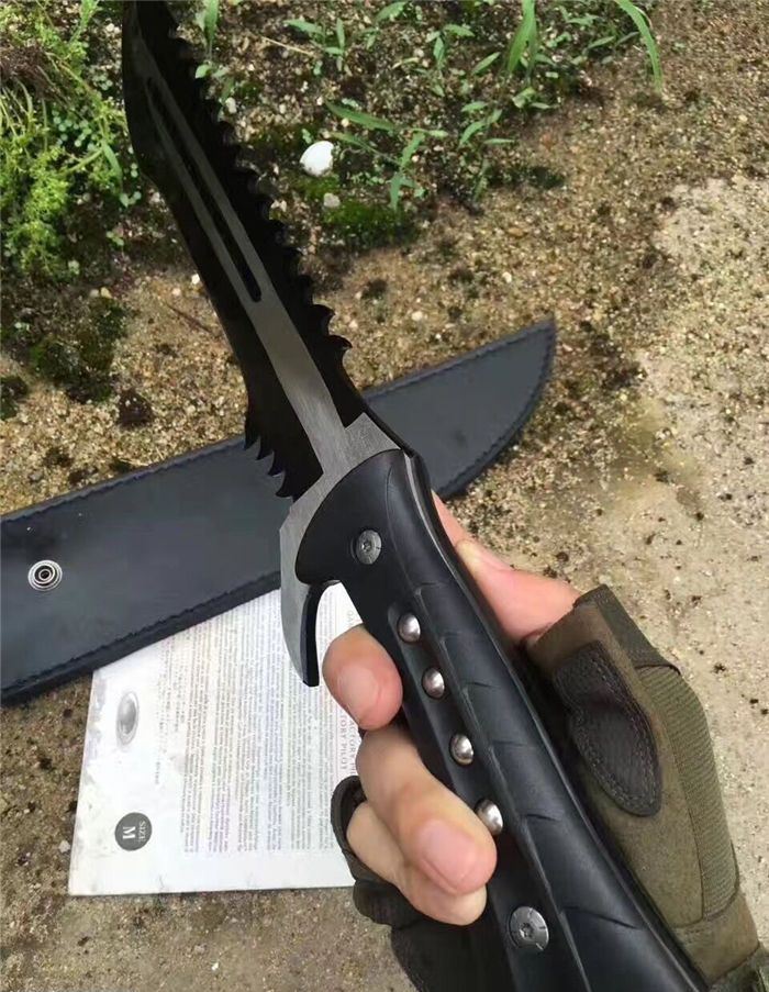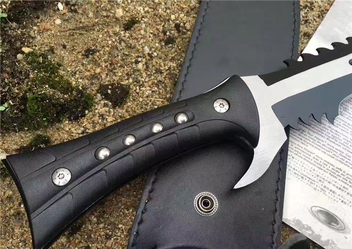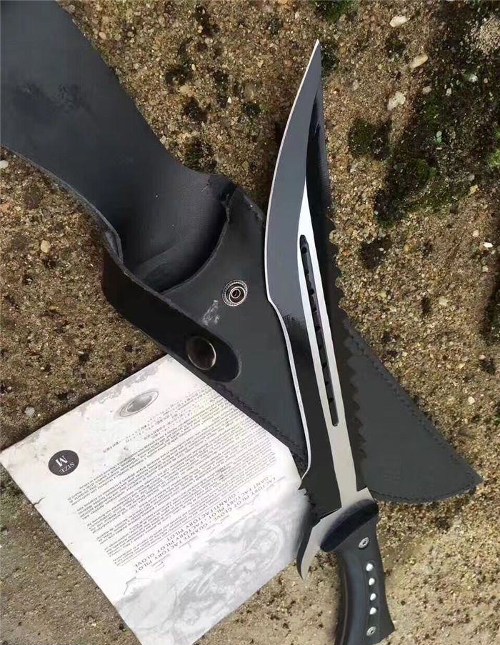 全 长:44.1mm 刃 长:290mm 柄 长:142mm 刃 宽:4.9mm 刃 厚:4.8mm 刃 材:7Cr17Mov 重 量:1108g(含包装) 硬 度:57HRC 表 面:拉丝-发黑 柄 材:ABS 锁 型:定锁 其 他:配尼套和硬纸盒