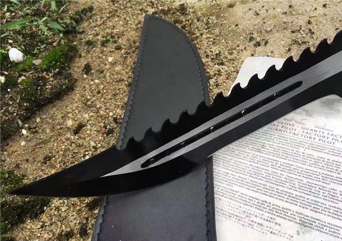 海底幽灵大白鲨拉丝版 全 长:44.1mm 刃 长:290mm 柄 长:142mm 刃 宽:4.9mm 刃 厚:4.8mm 刃 材:7Cr17Mov 重 量:1108g(含包装) 硬 度:57HRC 表 面:拉丝-发黑 柄 材:ABS 锁 型:定锁 其 他:配尼套和硬纸盒