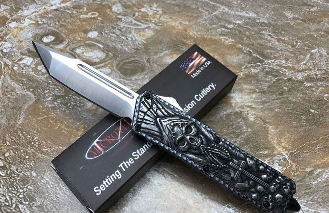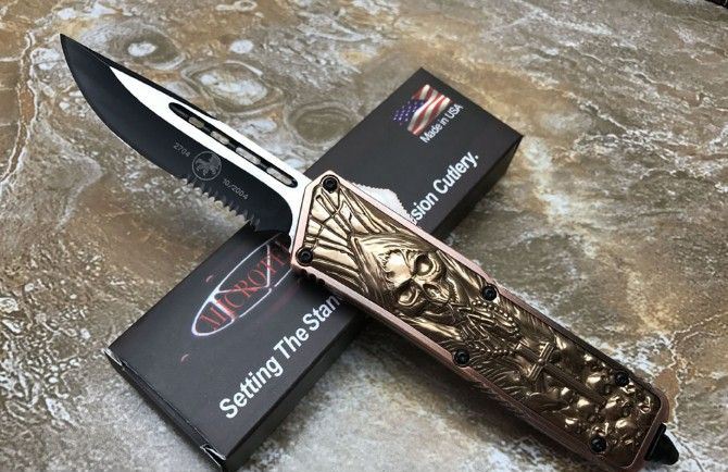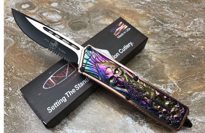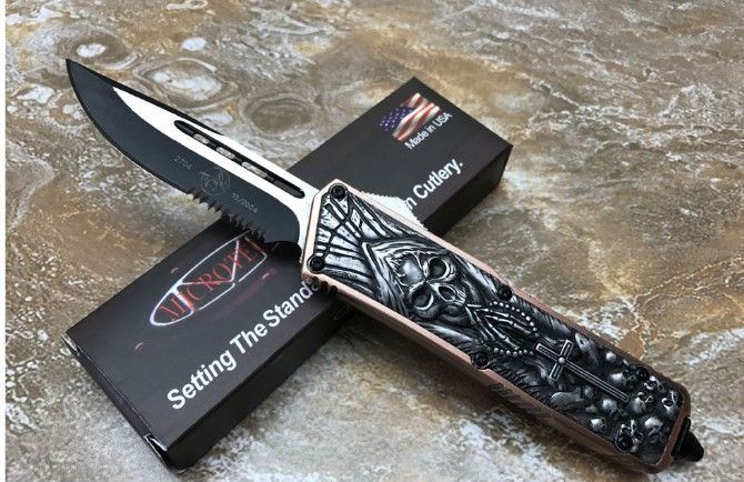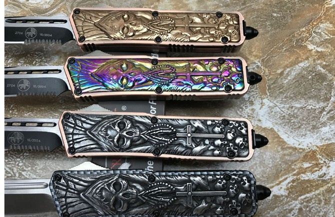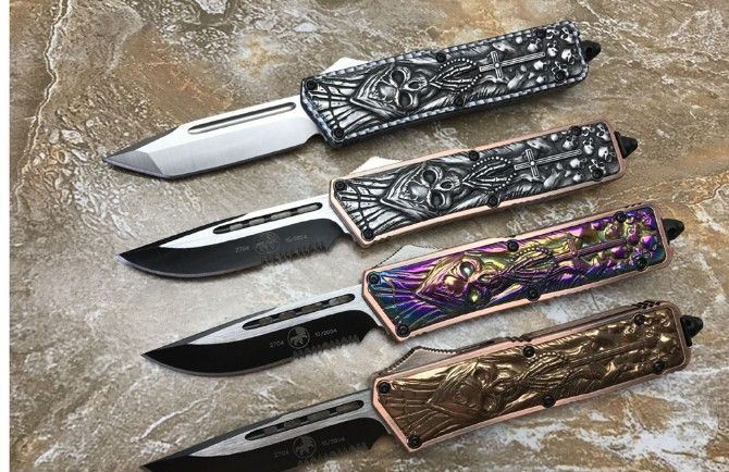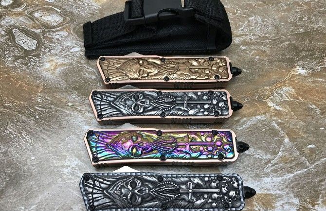 微技术KG邪神直出刀 全 长: 21.3cm (含尾锥长度) 刃 长: 8.5cm 刃 厚: 2.6mm 刃 材: 440 硬 度: 57HRC 重 量: 301.0克(含包装物) 表 面: 黑白拉丝(刀刃) 柄 材: 扎花凸图案锌铝合金 刀 鞘: 尼龙 备 注: 带背夹