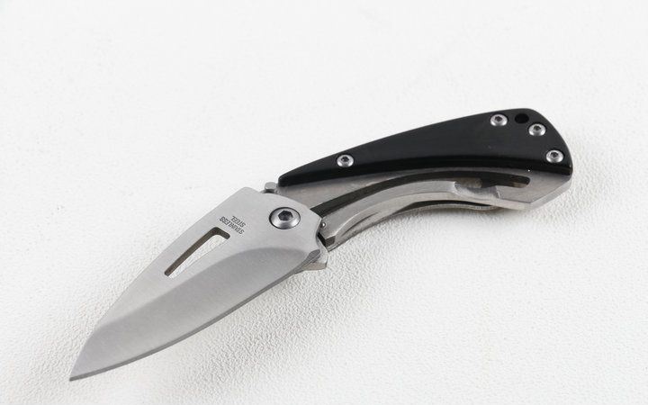 口袋小刀 全长:12.0 刃长:5.5 刃宽:2.4 刃厚:0.25 刃材:440 硬度:56 净重:50克 锁型:线力 包装:白盒