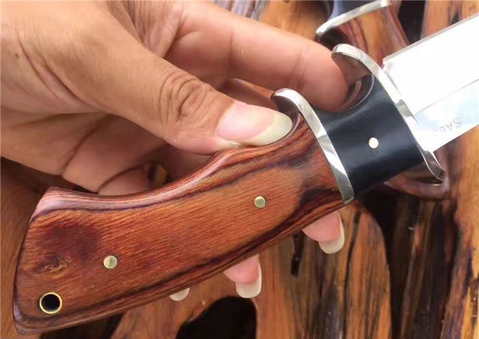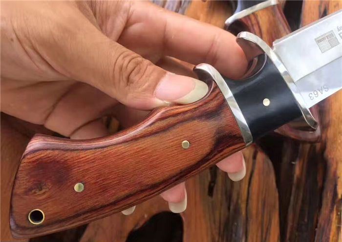 哥伦比亚SA63战术直刀 全 长:31.5cm 刃 长:18cm 刃 宽:3.6cm(最宽处) 刃 厚:3.9mm 柄 长:13.5cm 表 面:拉丝+镜光 刃 材:3CR13 硬 度:57HRC 柄 材:双钢头雕花+进口彩木 重 量:376克(含包装) 包 装:尼龙套