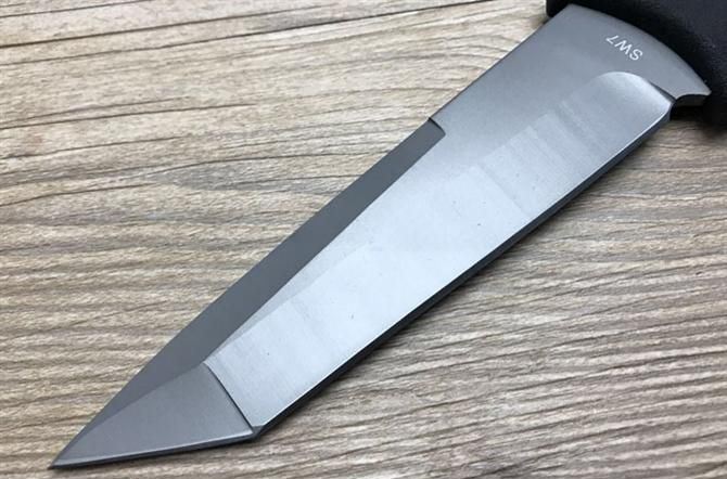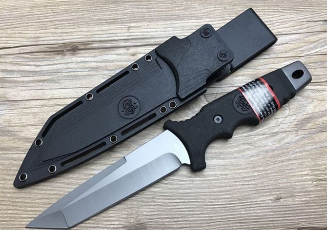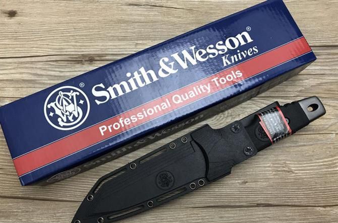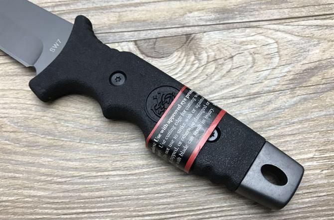 史密斯.威森SW7直刀 全长:270mm 刃长:140mm 柄长:130mm 刃宽:30mm 刃厚:40mm 刃材:8Cr14Mov 重量:650g(含包装) 硬度:58HRC{真空热处理) 表面:黑钛 柄材:橡塑(手感柔软舒适、防滑)钢尾 刀鞘:ABS鞘