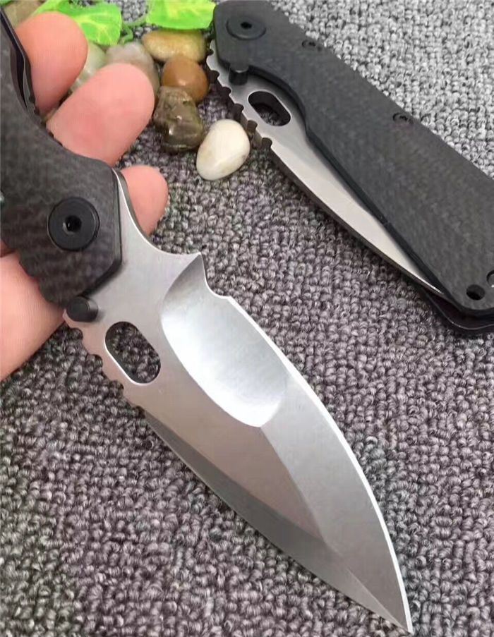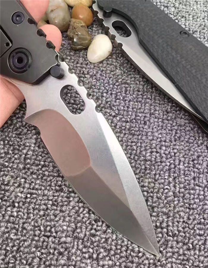 打开全长:23cm 闭合长度:12.8cm 刃长:9cm 刃最宽处:3厘米 刃厚:4.3毫米 净重:169克 刃材是9Cr18MoV钢,热处理硬度约58HRC。表面石洗处理。 柄材是正面碳纤维+反面钛合金