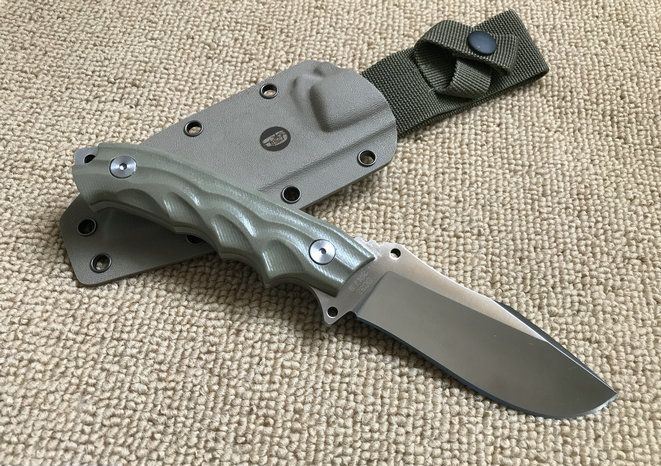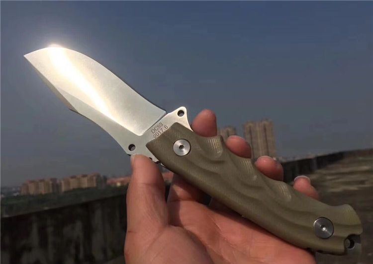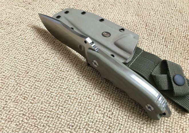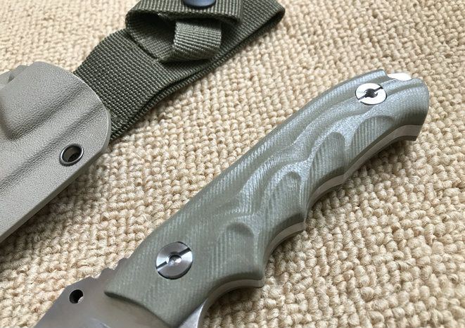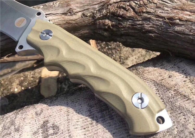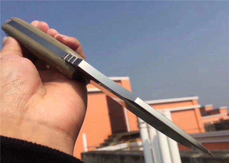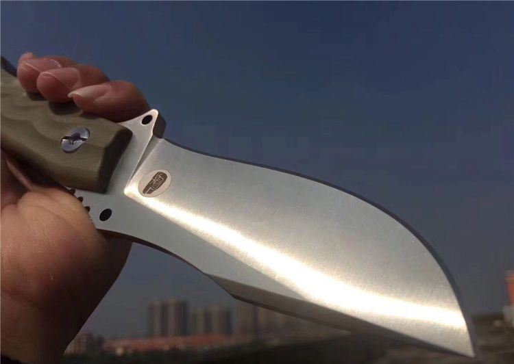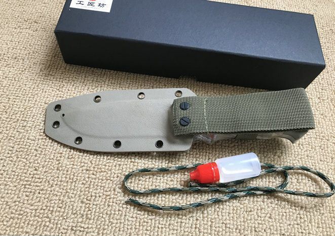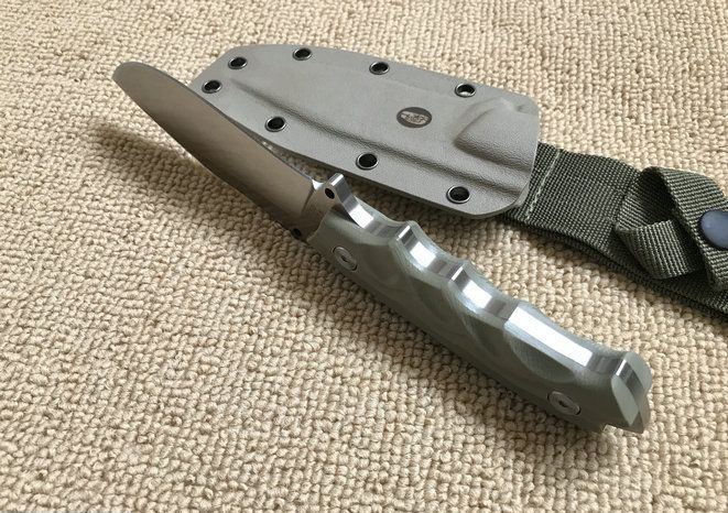 工匠坊空降兵DC53钢 全长230mm(龙骨一体) 刃长100mm 刃厚6mm 柄长130mm 刀刃最宽处39mm 表面:大平磨细砂光处理,超强立体感刃线 类型:以锋利度,韧性保持度最出色 开刃方式:二次开刃 刃材:DC53(线切割开料) 热处理方式:真空淬油热处理 硬度60_62HRC 柄材:沙漠色G10手柄+螺丝钢钉 包装:精美黑礼盒+护刀油+伞绳 毛重:475克(含包装)净重285克 刀鞘:美国进口沙漠色k鞘+带扣