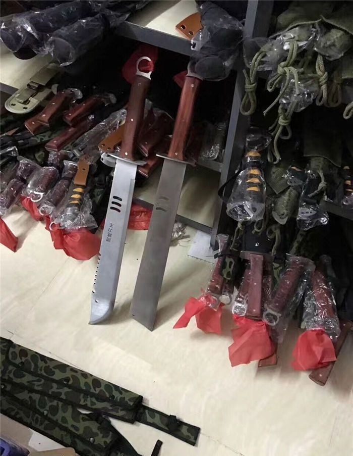 全 长: 68cm 刃 长: 42cm 刃 宽: 7cm(最宽处) 刃 材: 420 硬 度: 56 表 面: 砂光 刃 厚: 0.32cm 柄 长: 21.5cm 柄 材: 原木 重 量: 950克尼龙鞘