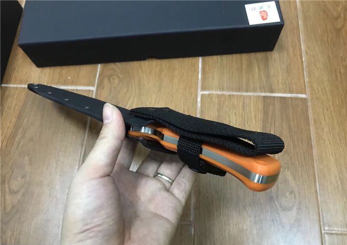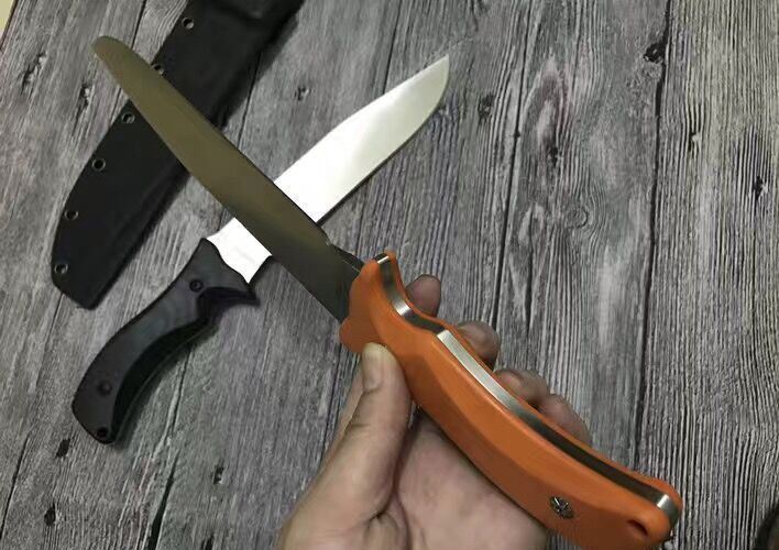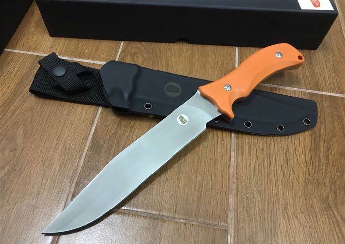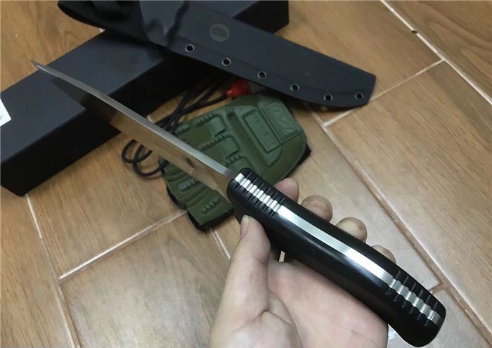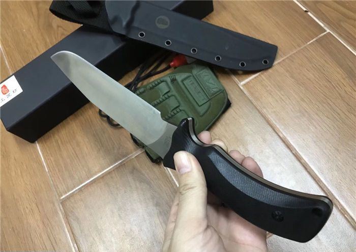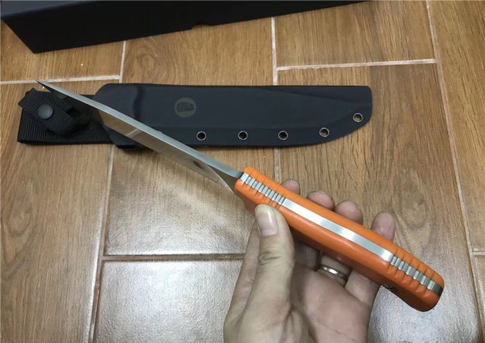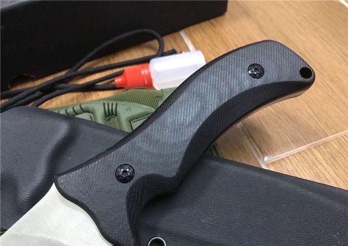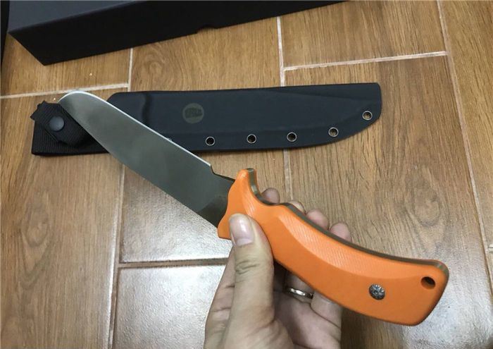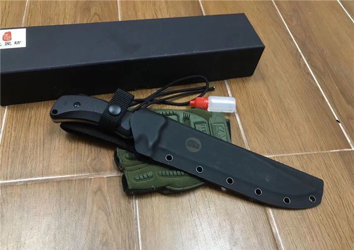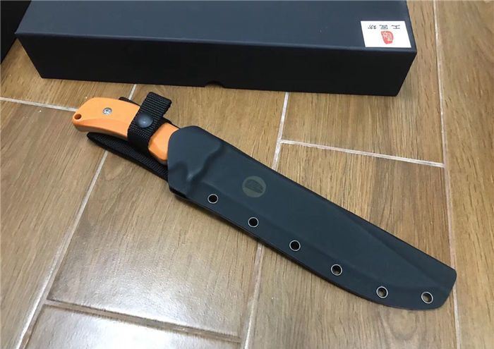 疯狗DC53钢战术直刀黑柄、橙色柄 全 长:33mm 刃 长:18mm 柄 长:13mm 刃 宽:30.5mm 刃 厚:5mm 锁 型:定锁 其 他:配硬纸盒+K鞘 表 面:精美纯手工砂光,幼拉丝 开刃方式:二次开刃 硬 度:不低于60-61HRC 柄 材:黑色G10 重 量:403克(含包装) 刀 鞘:K鞘 包 装:精美黑纸盒