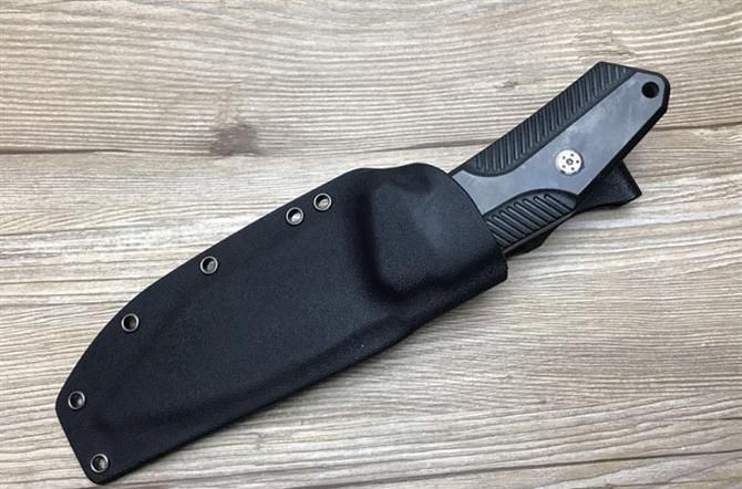 索罗巨人折刀 全长:243mm 刃长:118mm 柄长:125mm 刃宽:43mm 刃厚:4mm 刃材:VG-10 硬度:61-62HRC{真空热处理) 表面:拉丝处理 柄材:复合G10 刀鞘:进口K鞘
