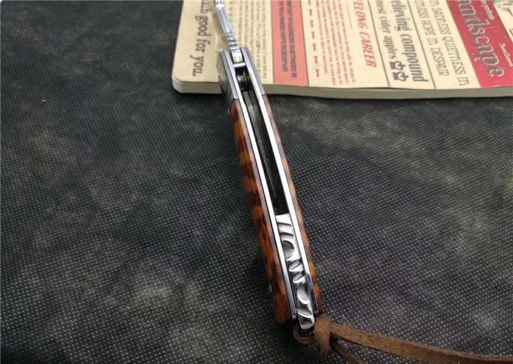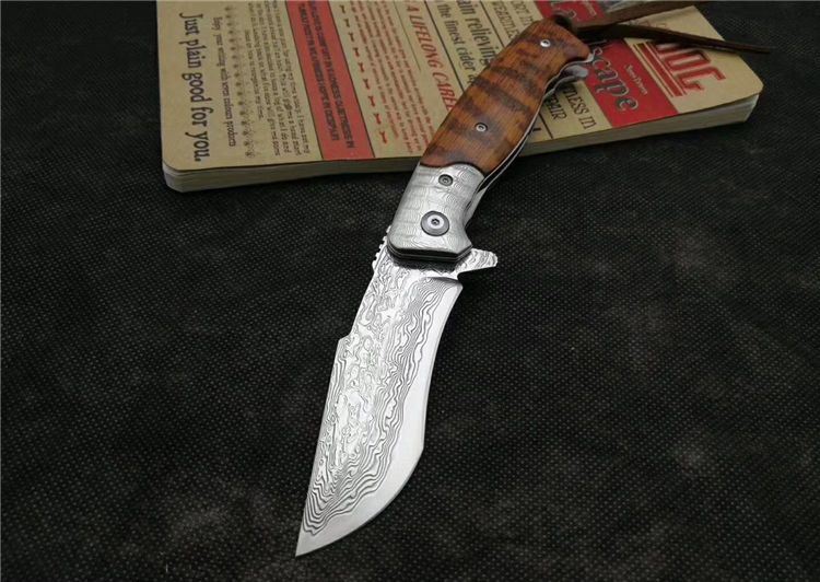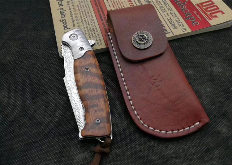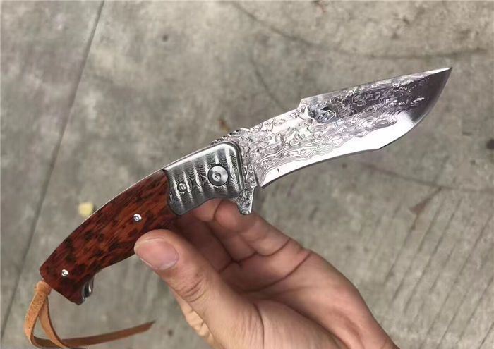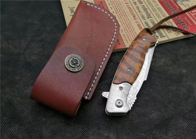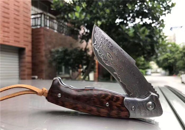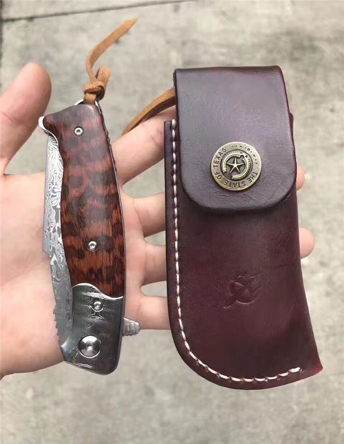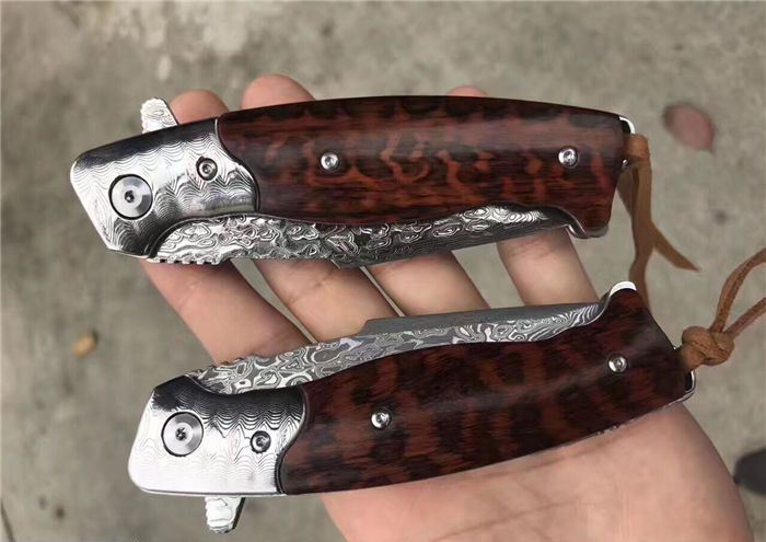 全长:20cm 刃长:8.5cm 刃宽:3cm 刃厚:3.8mm 钢材:日本夹层大马士革钢(钢芯层VG10)78层,真空深冷热处理, 开刀方式:单手快开 轴承:进口纯铜轴承 钢头:大马士革钢 柄材:进口名贵蛇纹木!背骨雕花,配皮绳子 皮套:进口植鞣皮手工缝线 盒子:硬盒子礼盒包装