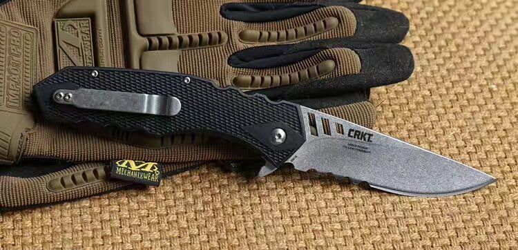 大号CRKT经济版快开小折刀 刃材是8Cr13MoV钢,硬度约57-58HRC 柄材是塑胶,内里钢衬片 可顺畅单手快开。 打开全长:22.5cm 闭合长度:12.7cm 刃长:9.5cm 刀片厚度:3.5mm 刃最宽处:3cm 刀柄厚度:16.2mm 净重:151克 包装:普通纸盒