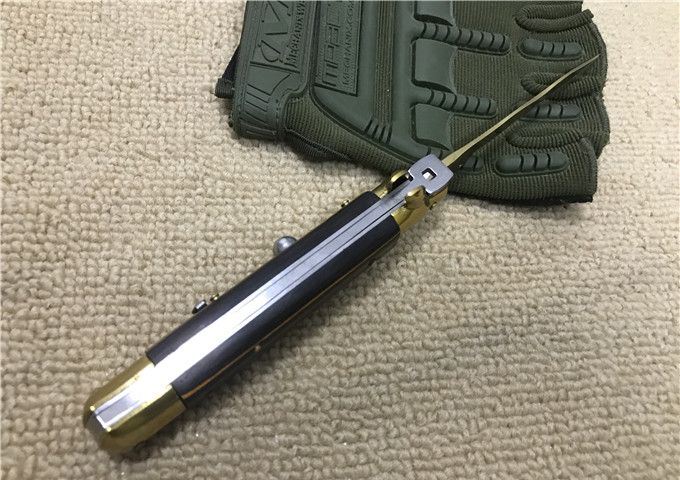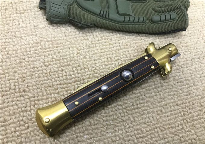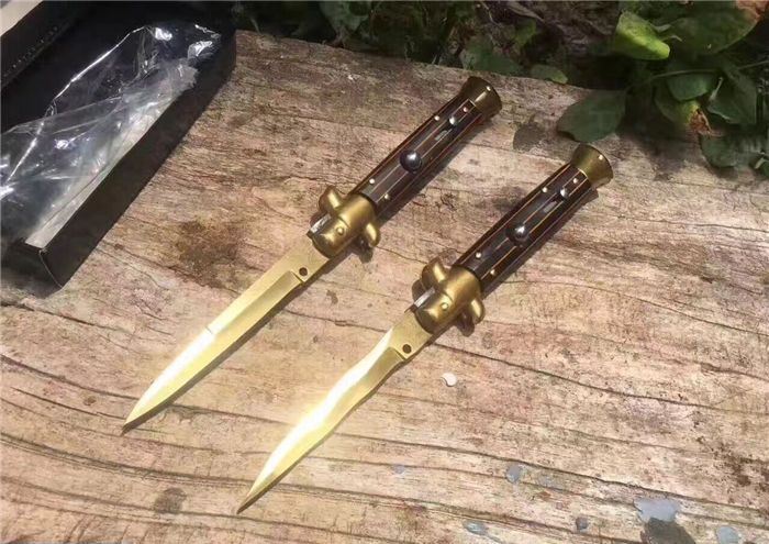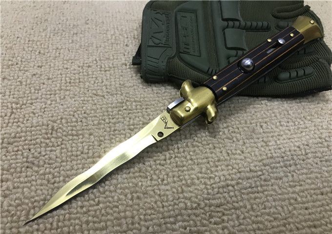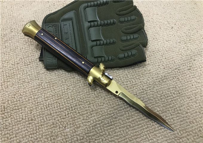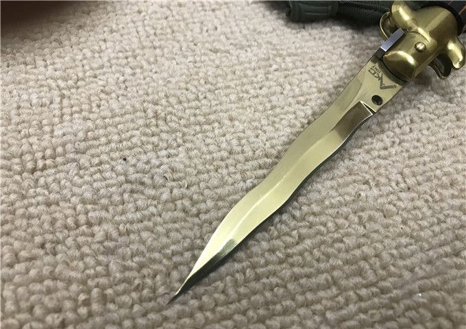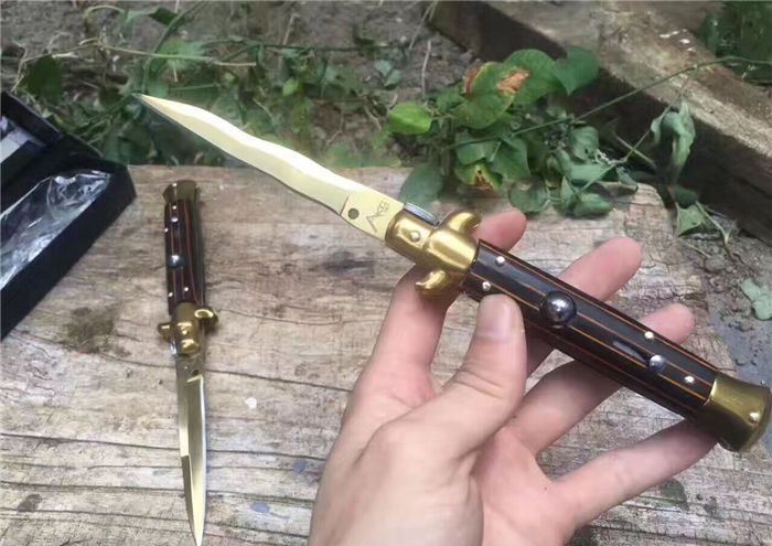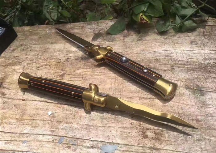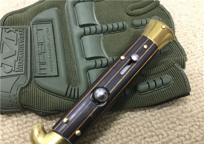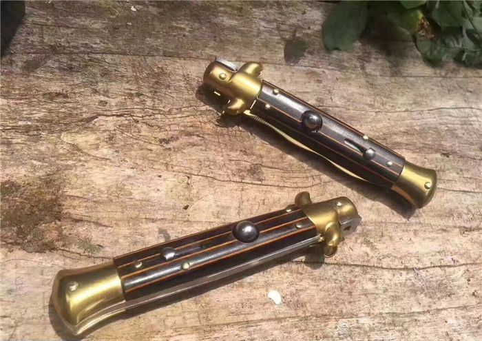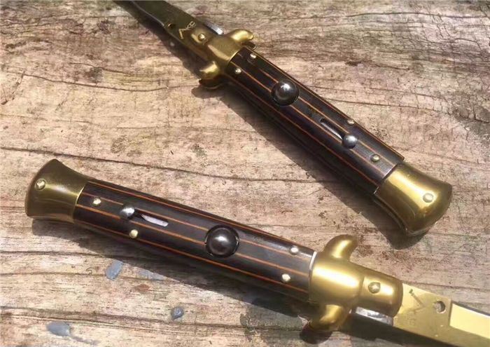 9寸彩木AKC意大利黑手党跳刀 全 长:22CM 刃 长:8CM 柄 长:12.5CM 刃 厚:0.25CM 刃 材:9铬18钼钒 刀 柄:彩木
