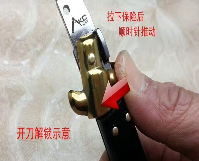 13英寸意大利黑手党赌徒跳刀 全 长:33cm 刃 长:14.8cm 折叠长:18cm 刃 宽:1.5cm(最宽处) 刃 厚:3.0mm 刃 材:440C刀 柄 材:整块天然黑牛角 表 面:镜光 开刀方式:弹簧 重 量:250克