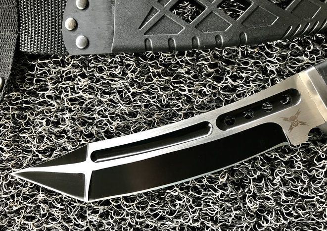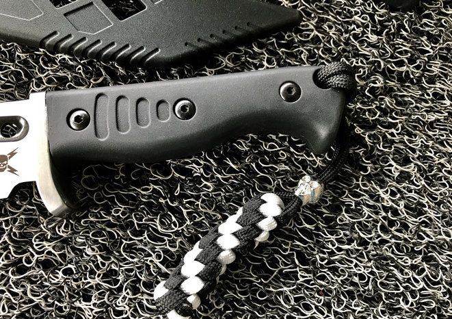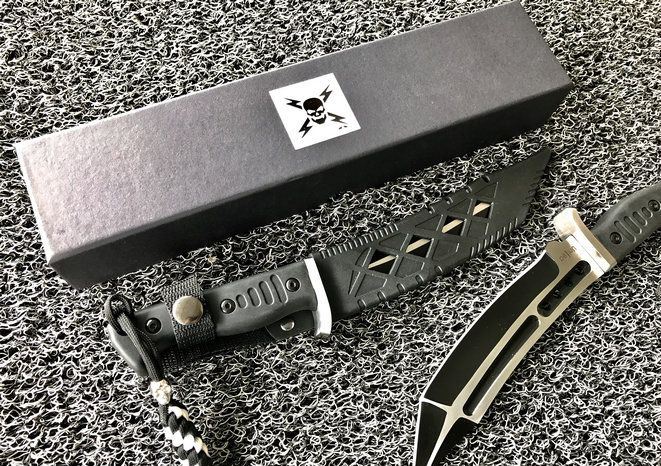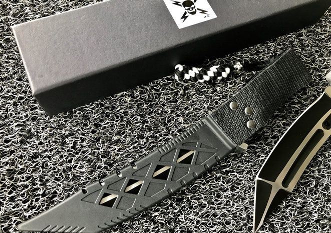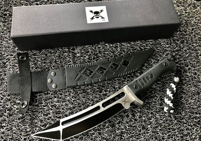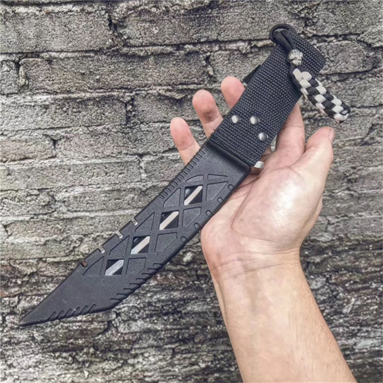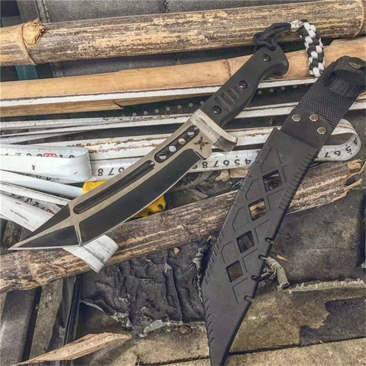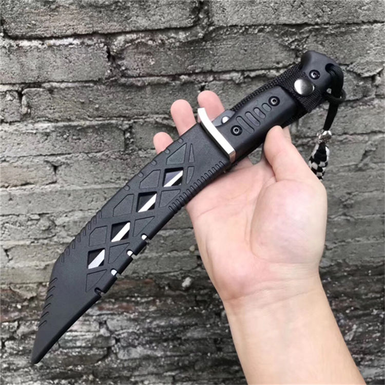 新款United联合刀具探界者直刀 全长:30cm 刃长:18.2cm 刃宽:3.6cm 刃厚:0.5cm 柄长:10.7cm 刃材:9Cr18M0V 表面:镀钛+拉丝 硬度:58-60HRC 柄材:ABS 鞘材:ABS 刀重:293克