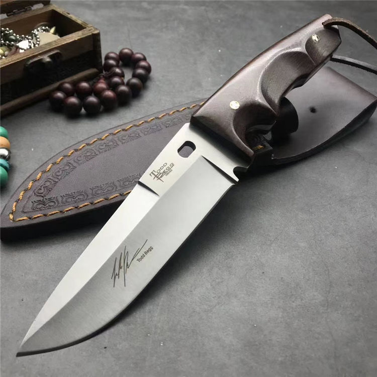 托德贝格冷月匕首 全 长:25.5CM 刃 长:12.5CM 柄 长:12CM 刃 宽:4.0CM 刃 厚:0.5CM 刃 材:9Cr18M0V 重 量:480g(含包装) 硬 度:59HRC 表 面:精光 柄 材:钢一体柄+进口鸡翅木 锁 型:定锁 其 他:配真皮套