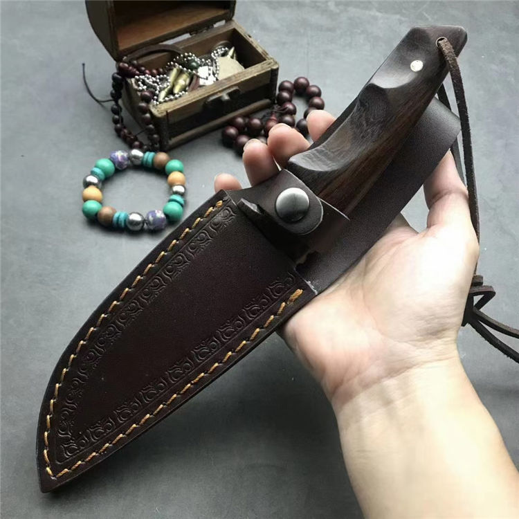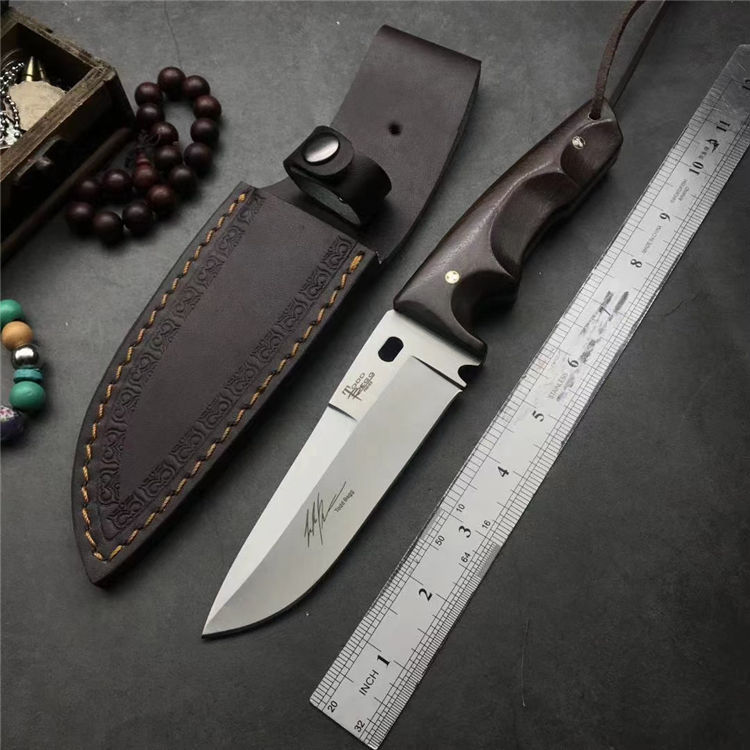 全 长:25.5CM 刃 长:12.5CM 柄 长:12CM 刃 宽:4.0CM 刃 厚:0.5CM 刃 材:9Cr18M0V 重 量:480g(含包装) 硬 度:59HRC 表 面:精光 柄 材:钢一体柄+进口鸡翅木 锁 型:定锁 其 他:配真皮套