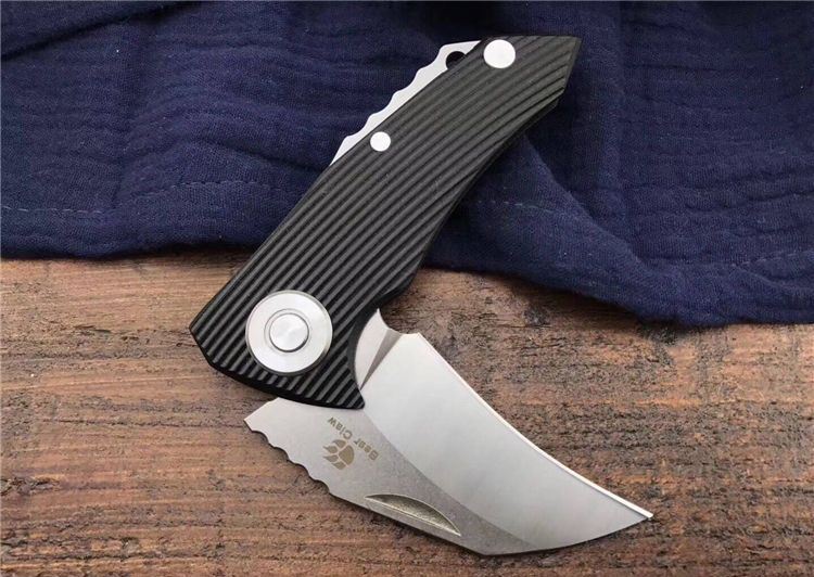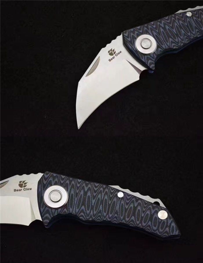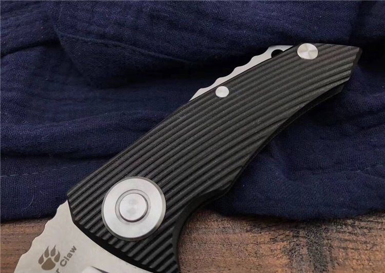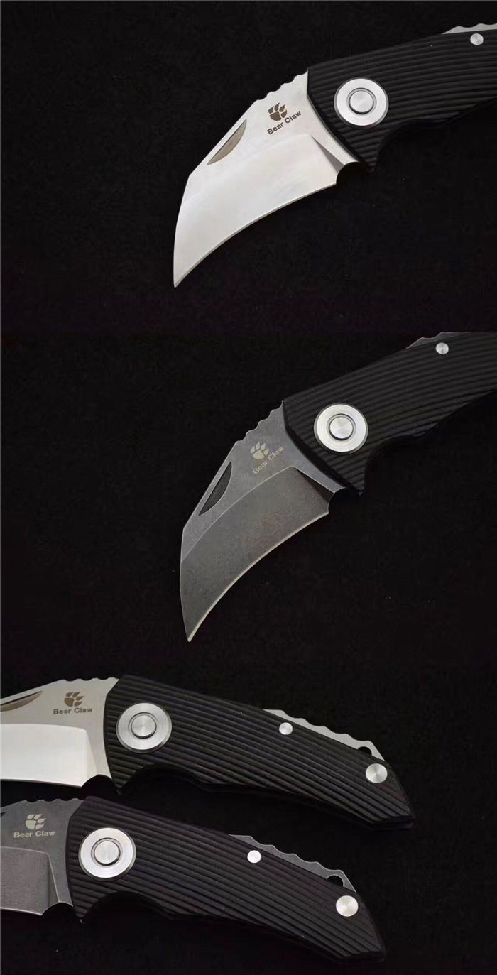 公狼弗莱基是主神奥丁的爱兽,常蹲在奥丁的脚边,所以谁遇见了,谁就有好运,设计者用意也是如此,得到此爪刀者能带来好运!!Bear Claw 原创爪折,D2的钢材,高硬度,优良的锋利度,极有创意的无锁设计,安全可靠,适合一切户外活动使用,值得拥有!!