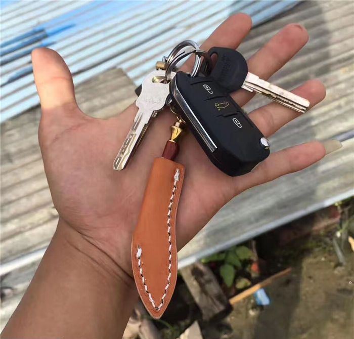 手柄材料:纯黄铜+大叶紫檀木+钥匙圈