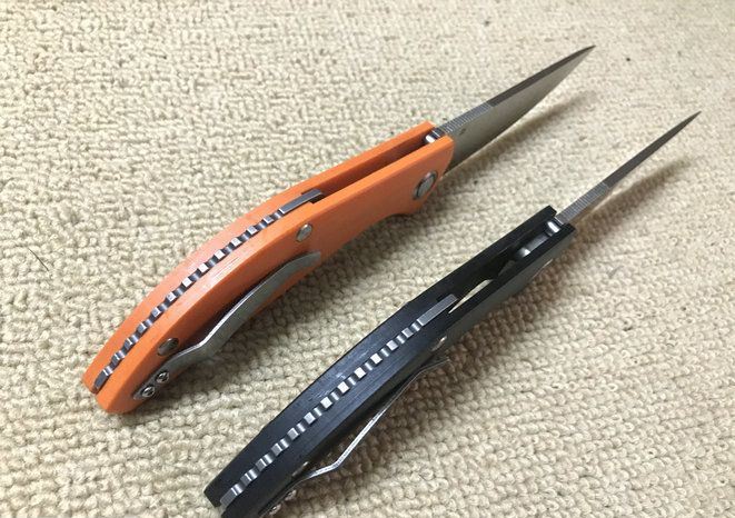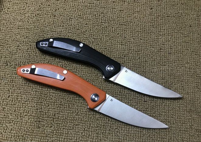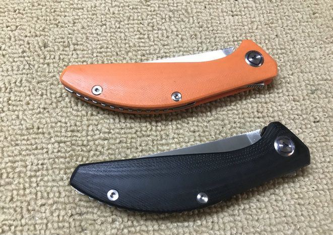 新款蓝月折刀 全 长:230mm 刃 长:98mm 柄 长:132mm 刃 宽:29mm 刃 厚:3.7mm 刃 材:D2(深冷处理) 重 量:220g 硬 度:60HRC 表 面:沙光 柄 材:G10 锁 型:分体组合锁杆式线锁 螺 丝:所有螺丝420不锈钢硬度HRC45,全CNC精雕加工 结 构:一体线锁。陶瓷定位珠,内置平面滚针轴承 其 它;礼品盒包装