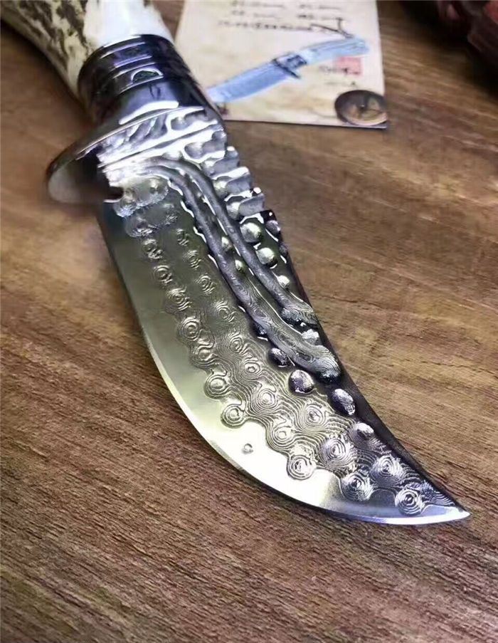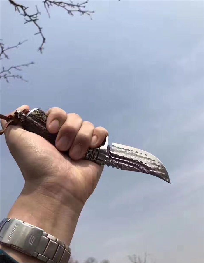 典藏世家秋水雨滴纹大马士革手工猎刀