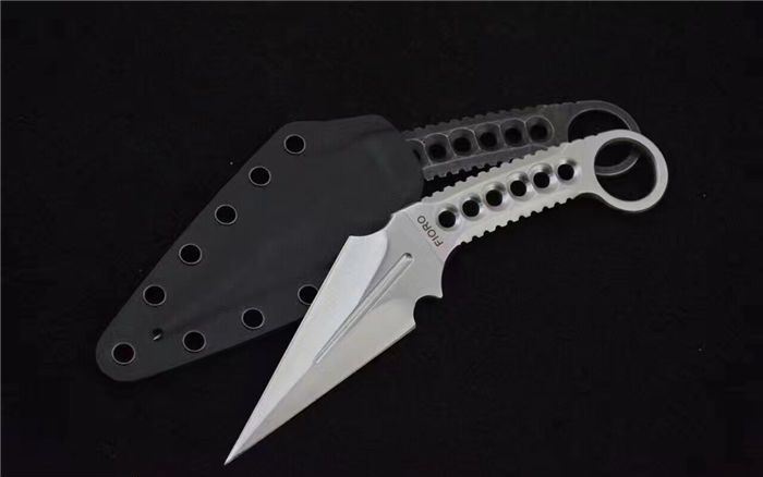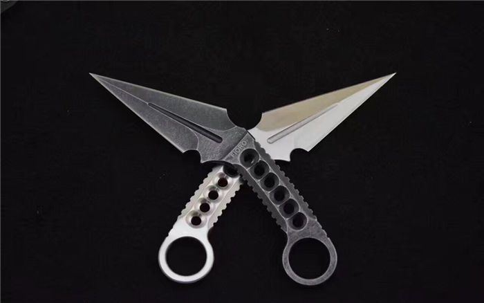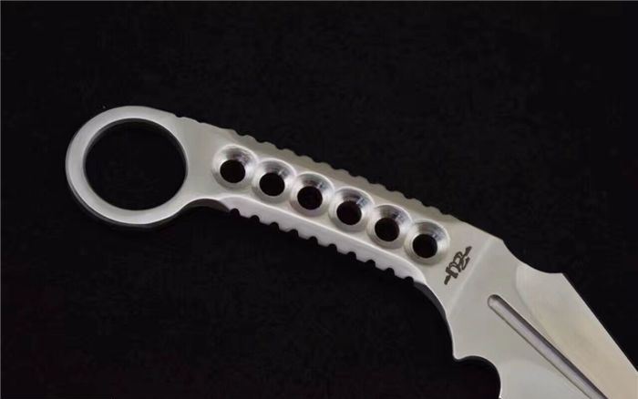 反击者双刃战斗爪刀 全 长:19cm 刃 长:7.9cm,背刃:8.8cm 柄 长:8.5cm 刃 宽:3.7cm(最宽处) 刃 厚:4mm 刃 材:9CR 刀 重:100g 重 量:222g(含包装) 硬 度:58HRC 表 面:砂光和沧桑石洗 柄 材:全钢手柄,经CNC精细处理,可以防滑 其 他:K鞘+黑色礼品