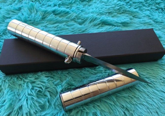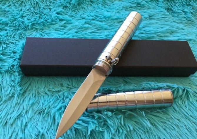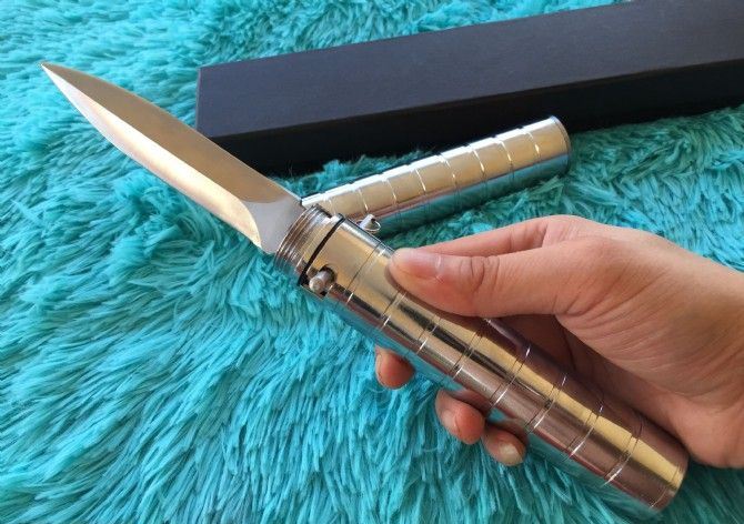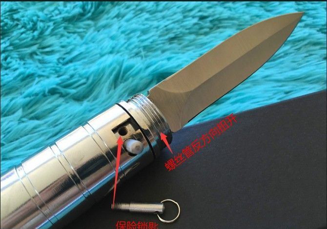 联合国-特种部队弹道飞刀 全 长:284mm 刃 长:121mm 柄 长:163mm 刃 宽:25mm 柄 宽:32mm 刃 厚:2.7mm 刃 材:7铬13钼钒 硬 度:62HRC 重 量:0.8kg 包 装:礼品盒 备 注:该刀为联合国特种部队禁用武器,杀伤力强。配有保险匙即可发射。 注 意:刀管是反方向扭开。