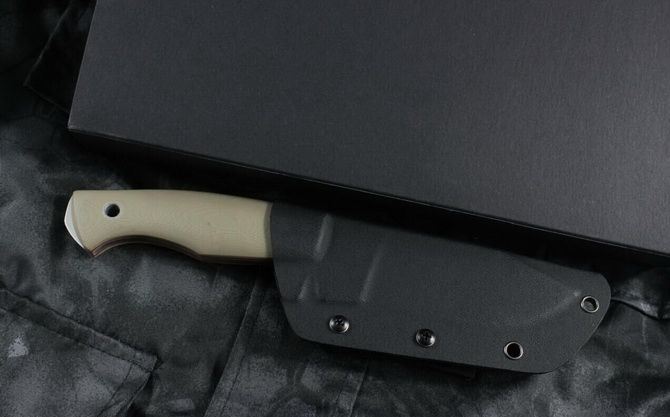 博克LC小直刀 全长:23.5mm 刃长:9.2mm 柄长:14.3mm 刃厚:4mm 刃材:D2 刃表面:石洗 硬度:60~61 柄材:G10双色柄 刀鞘:k鞘 净重:238克 包装:高级礼品纸盒