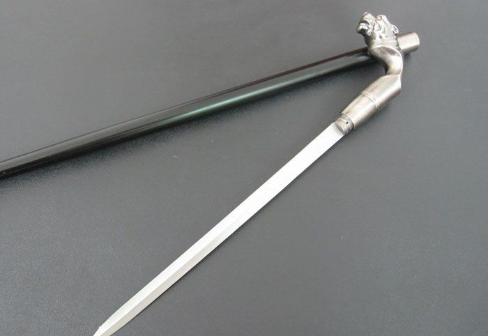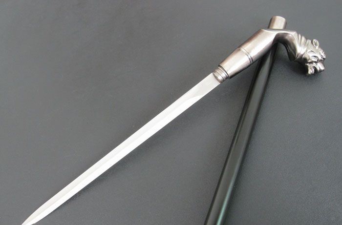 狮头拐杖剑 全 长:97.0cm 刃 长:30.0cm 柄 长: 12.0cm 刃 宽:1.5cm(最宽处) 刃 厚:2.7mm 刃 材:420 硬 度:52HRC 手 柄:锌铝合金 表 面:砂光 重 量: 900.0克 备 注: 剑藏于手杖中